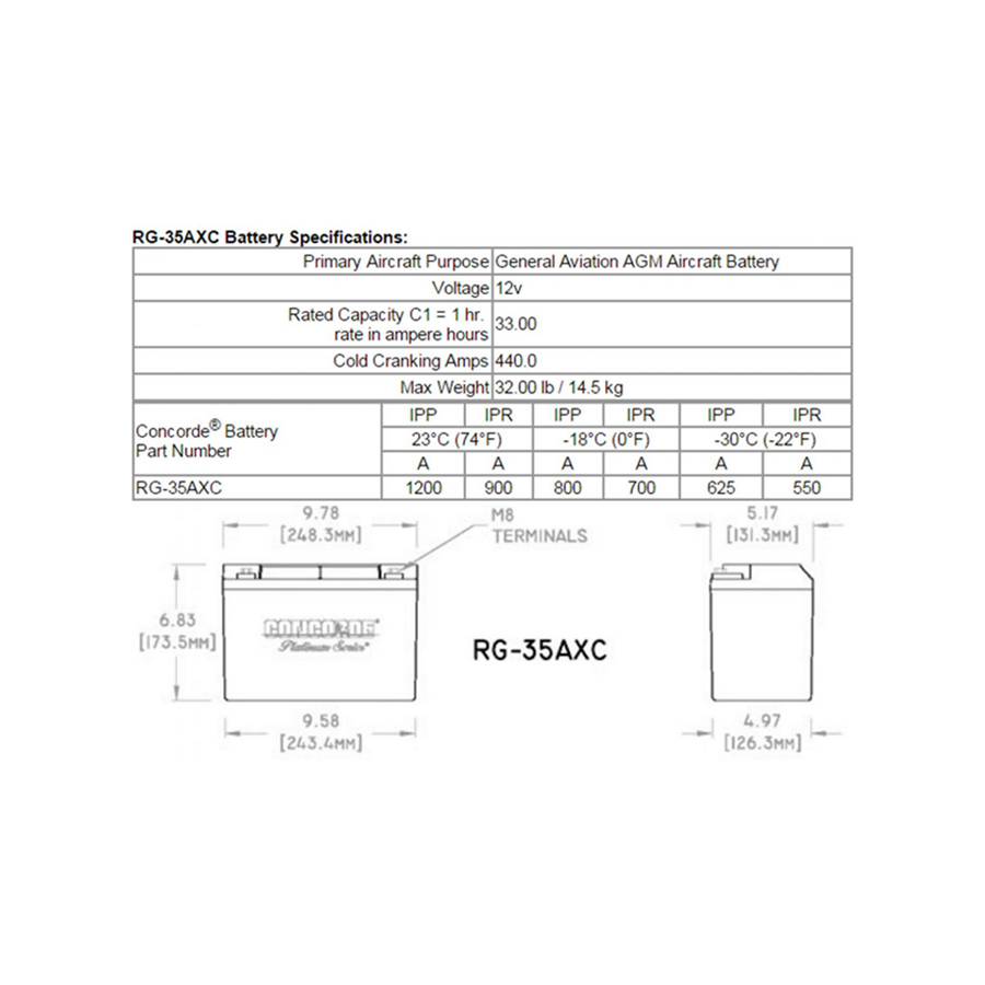 Concorde RG-35AXC 12-Volt Aircraft Battery
